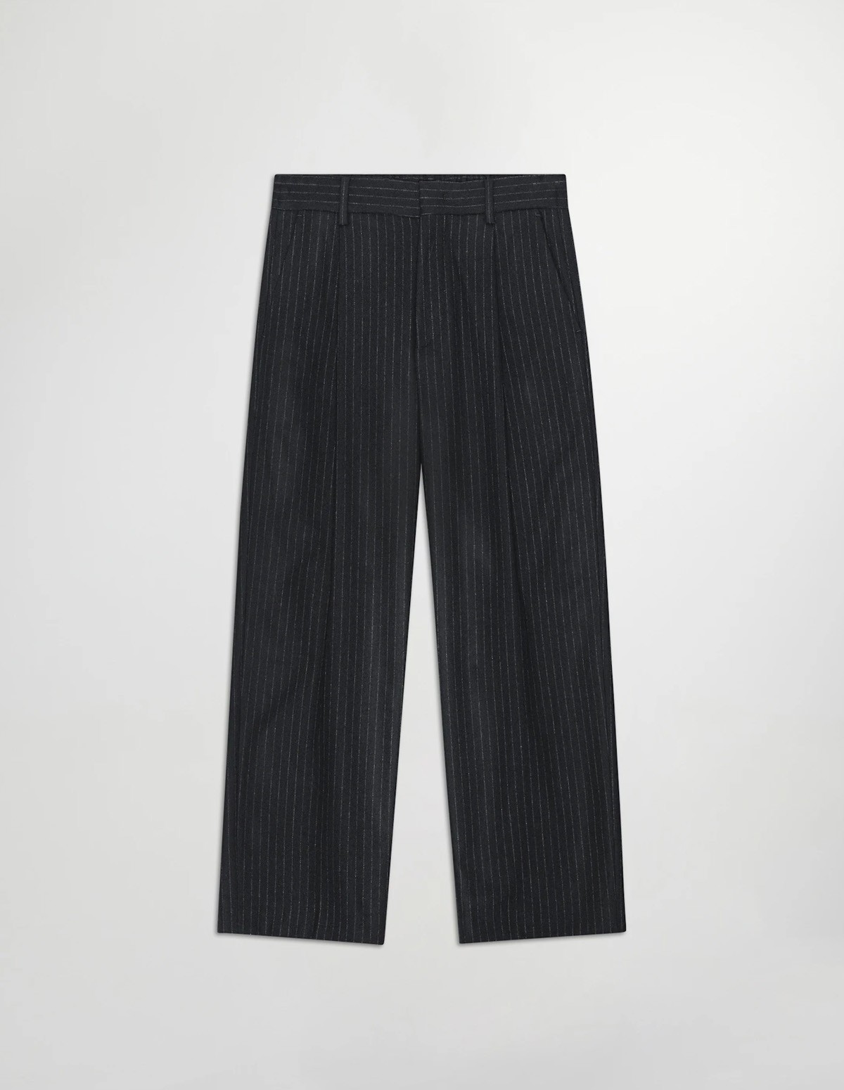 Made from a 380 g/m² recycled wool blend, these dress trousers offer a premium handfeel while having a relaxed fit. The pleats at front and wool twill weaving give the trousers a classic and clean look, featuring pockets on the back and a hook and bar plus zipper for closure.